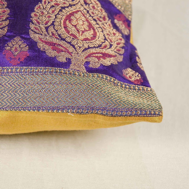 New arrivals in Blue!!! There are two new Royal blue and Gold Banarasi Silk Pillow covers that we have made recently. These lumbar cushion covers are made of pure silk, sari silk fabrics. They are bright and there is never a dull moment when you are in a room decorated with these silk pillows.
